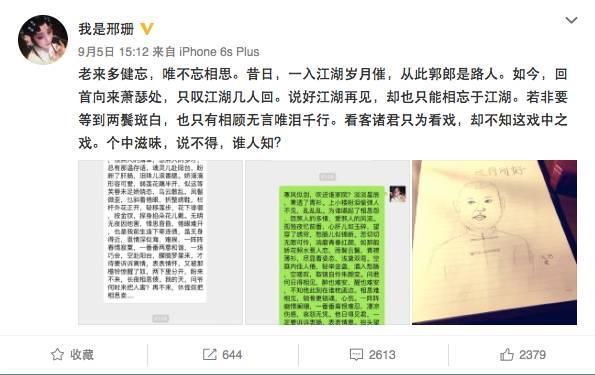 其实事情早已发酵,在曹云金发文后仅仅两个小时,“我是邢珊”就在微博上抄了首诗,“从此郭郎是人”,还弄了一幅郭德纲的画像。告诉我,这葫芦里卖的是什么药?