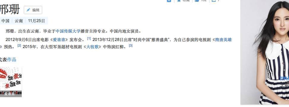 中国传媒大学播音主持专业的邢珊,最早蹭的是“娜扎”,因为外形与古力娜扎有些像,在圈内的外号就叫“小娜扎”。(我还是小冰冰呢)毕竟娱乐圈有对比就会有,邢珊倒也是涨了不少人气。