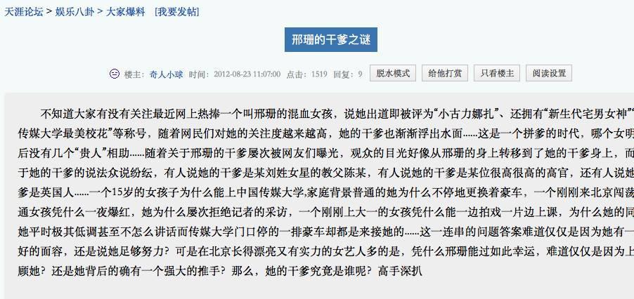 曾有个山西首富叫邢利斌,没想到也跟演员邢珊被扯上了关系。在天涯论坛盖楼,扯出了这样一个话题“山西首富女儿邢珊也要进军演艺圈?”首富千金,果然夺人眼球啊。